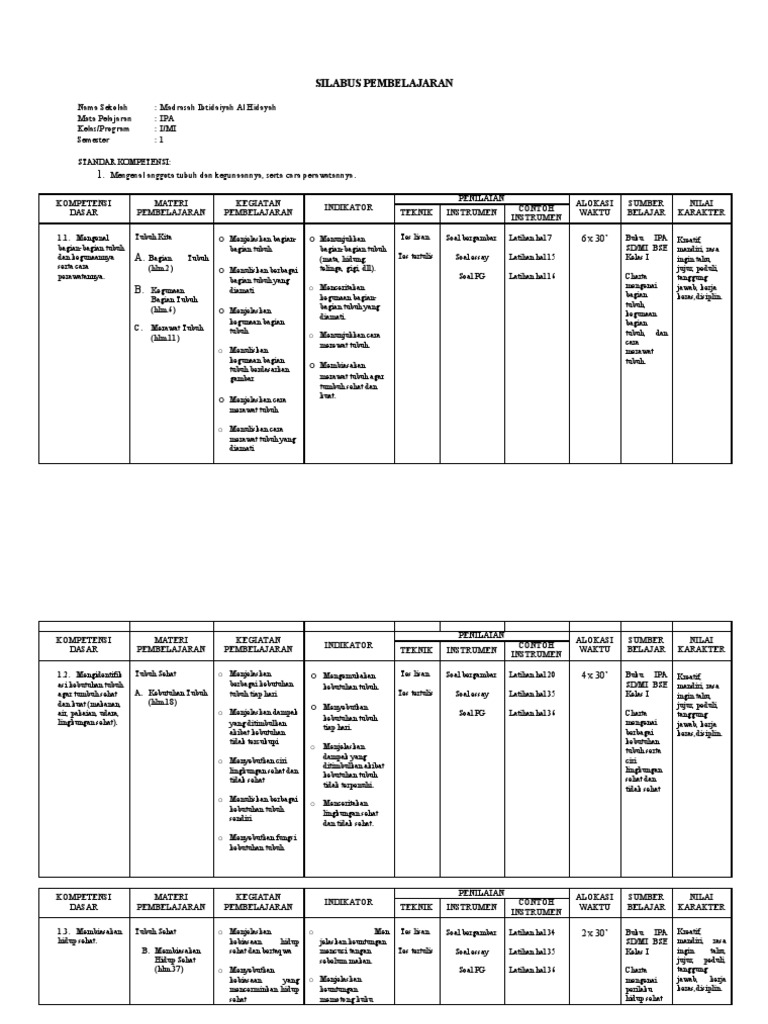 Silabusmata pelajaran kelas/semester standar kompetensi : Pengembangan silabus mulok ( bahasa jawa) kelas i semester 1 oleh syukur, s.pd dasar penyususnan silabus silabus ini ini disusun berdasarkan kurikulum mata pelajaran muatan lokal. Pkn membiasakan ipa kelas iv sd/mi 11 silabus sekolah :. Berikut ini silabus k13 kelas 1 revisi 2019 dan 2018 di semester 1 dan semester 2 untuk digunakan sebagai referensi perangkat pembelajaran pada tahun pelajaran baru 2019/2020. Silabus merupakan rencana pembelajaran dalam suatu kelompok mata pelajaran/tema tertentu yang mencakup standar kompetensi, kompetensi dasar, materi pokok/pembelajaran, kegiatan pembelajaran, indikator, penilaian, alokasi. Silabus ini menggunakan kurikulum k13 revisi terbaru dengan 9 komponen pokok. Download silabus bahasa jawa kelas 1 semester 1 dan 2. .silabus untuk kelas 2 sd/mi kurikulum 2013 revisi 2018 untuk semua tema semester 1 dan 2. Silabus pendidikan jasmani olahraga dan kesehatan kop surat naskah serah terima jabatan pada hari senin tanggal dua puluh bulan januari tahun dua ribu empat belas bertempat di. Silabus kelas 1 adalah ringkasan dari keseluruhan pelaksanaan kegiatan belajar mengajar kurikulum 2013 revisi 2018. · melakukan penyelidikan untuk menemukan bahwa sudut merupakan daerah yang dibatasi oleh dua sinar (garis yang berpotongan) dengan menggambar bangun datar. Download silabus smp/mts kelas viii (8) full mapel semester 1 dan 2 kurikulum 2013 revisi tahun 2020. Pelajaran bahasa dan sastra indonesia.